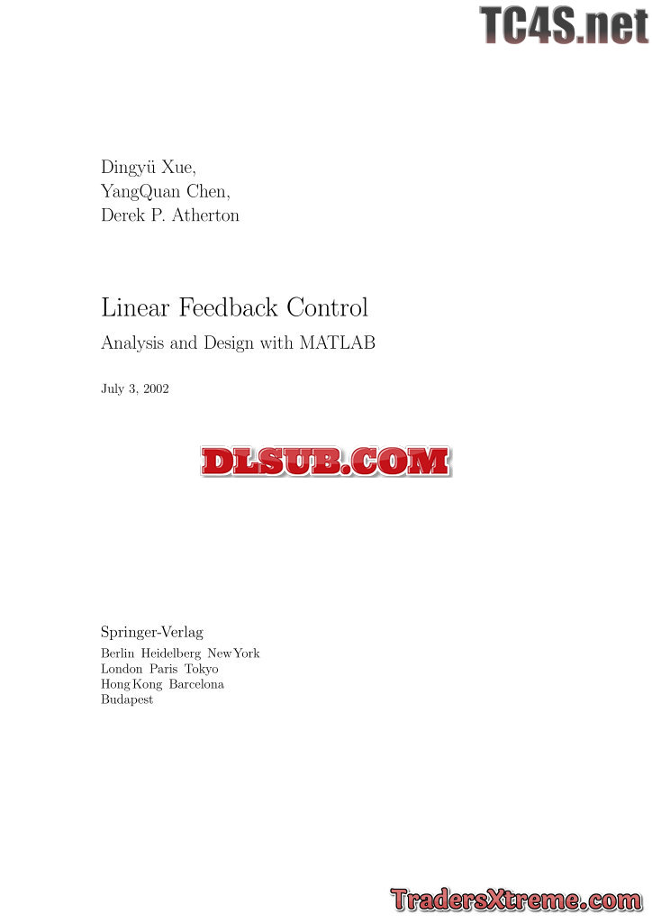 Xue D Chen Y Q Atherton D P Linear Feedback Control Analysis And Design With Matlab Springer 2002en220s - JPG Image File
