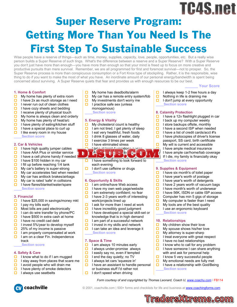 Super Reserve Program Checklist Of 100 Items To Build Your Own Reserve - JPG Image File