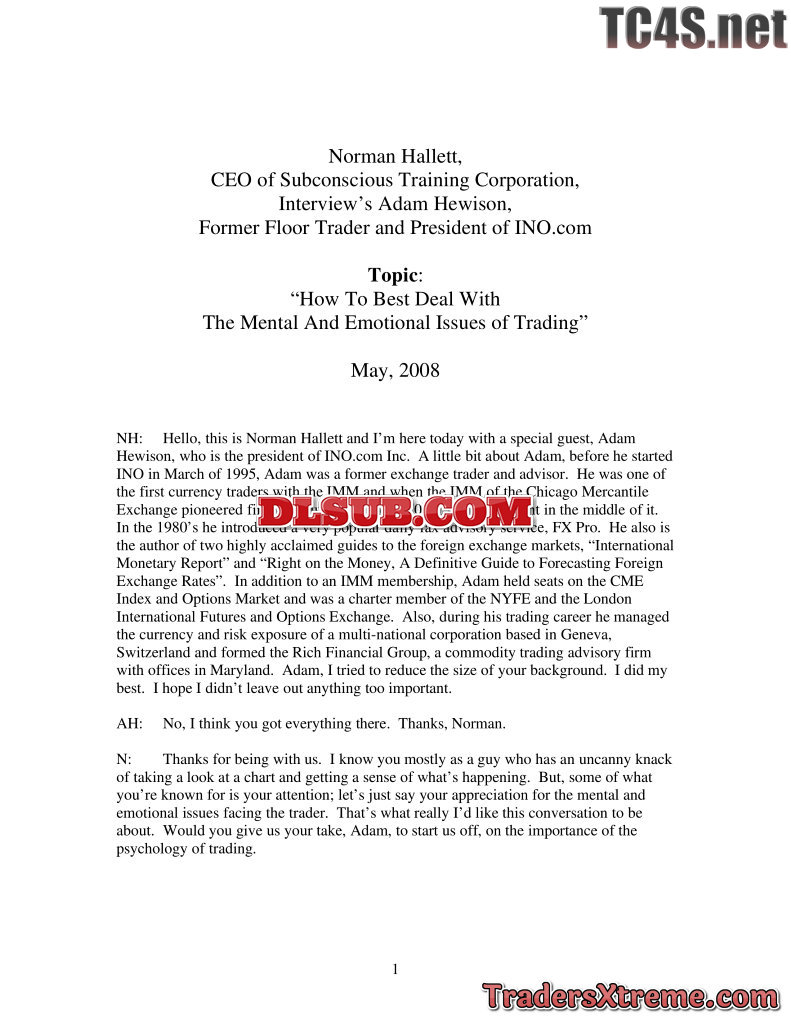 Trading Psychology With Adam Hewison Transcript Of Mp3 - JPG Image File