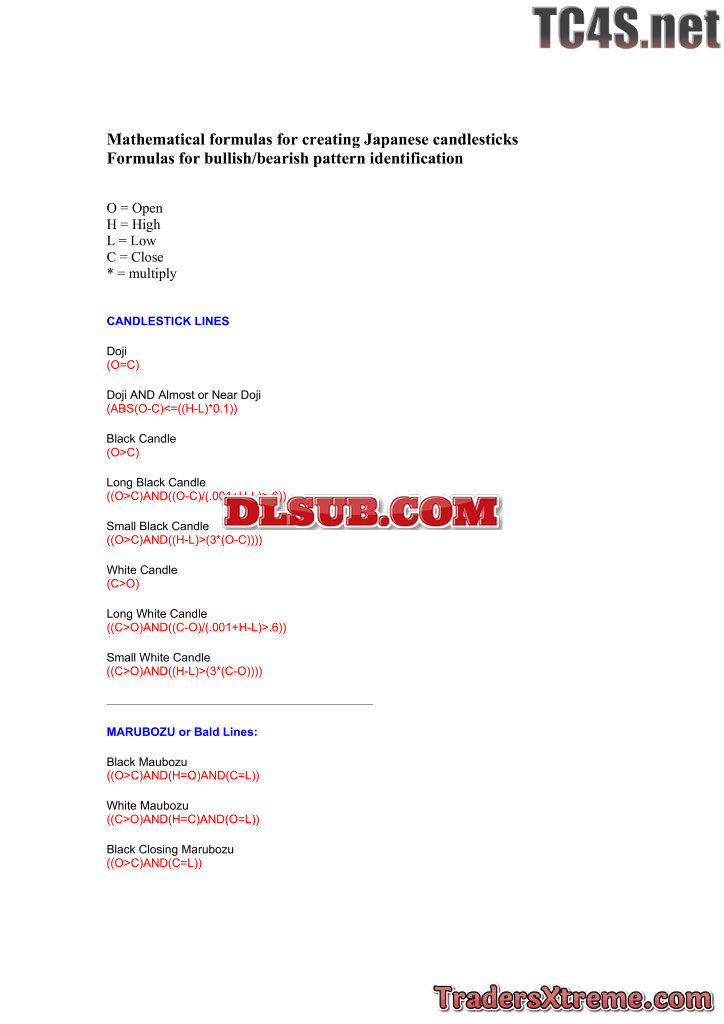 Mathematical Formulas For Creating Japanese Candlesticks In Metastock - JPG Image File
